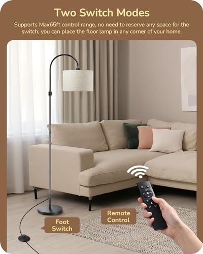[Multi-function Remote Control & Footswitch] Support 65ft remote control with timer, memory, and other functions, both practical and convenient; footswitch for easy ON/OFF, No need to bend over, ideal for the elderly or pregnant; 79" total cord length for standing lamp, footswitch 39" from the plug