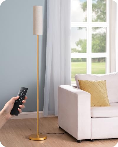 EDISHINE LED Corner Floor Lamp for Living Room, 65" Tall Standing Reading Lamp with Remote, Minimalist Dimmable Pole Lighting for Bedroom, Office, Kids Room, 9W Bulb Included, 2700K-6000K (Gold)