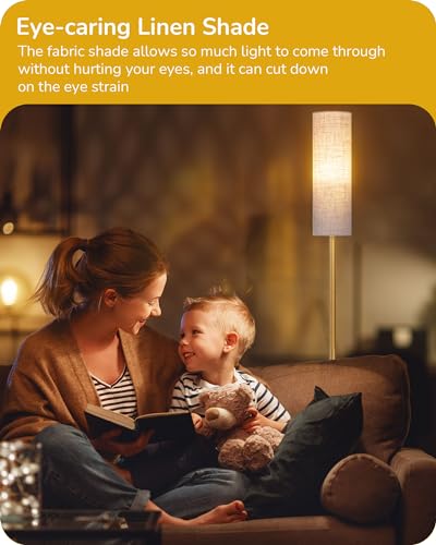 [Modern & Minimalist Design] The minimalist floor lamp uses a black light pole with a linen lampshade casting a gentle glow; slim enough to hide in any corner of living room, bedroom, office, or apartment, saving space, and surprises you with its captivating lighting, adding a touch of elegance to your space