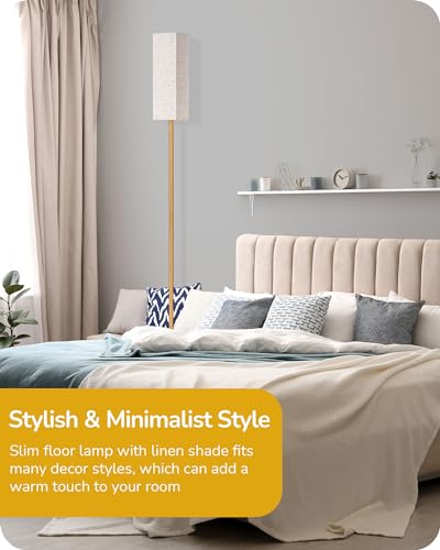 [Modern Design & Space Saving] Our floor lamp will transform your space with sleek metal finish and linen lampshade; soft light won't hurt your eyes; compact 9" diameter base fits perfectly into any corner of your home; ideal for bedroom, living room, office, and apartment