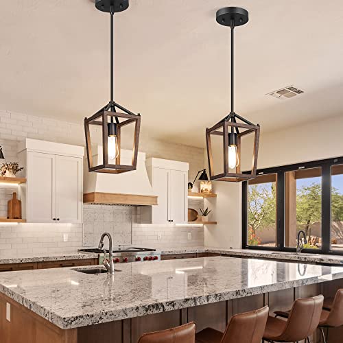 ?Wide Application?Industrial farmhouse pendant light with imitation wood-look texture transforms any space with its charming ambiance, perfect for your kitchen island ,dining room, foyer, entryway and etc