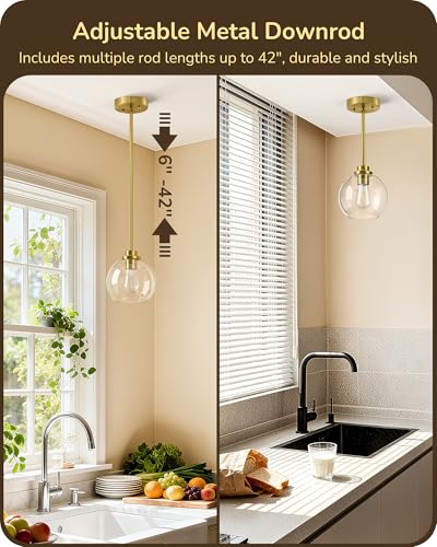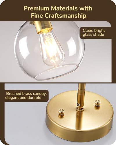[Elegant Vintage Design] This hardwired pendant light fixture features a clear glass globe and gleaming gold canopy, offering timeless charm and soft, inviting light that suits a variety of decor styles