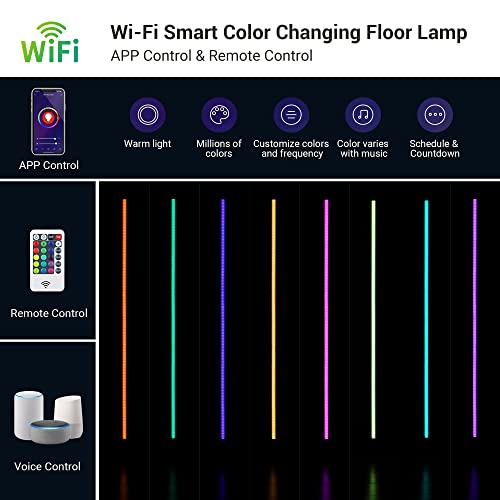 [Dimmable & Memory Function] Stepless dimmable via APP, available to adjust 10 warm light brightness levels and 5 RGB lights brightness levels by remote control; the versatile floor lamp can memorize previous brightness setting from your last use; compatible with all standard timers, WiFi smart plugs, remote control outlets, and wall switches