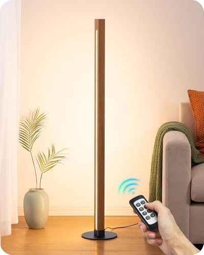 [Natural Wood LED Floor Lamp] Crafted with premium solid wood, the sleek one-piece pole light saves space while adding a warm, minimalist touch to your décor; every detail reflects refined craftsmanship for a truly unique texture