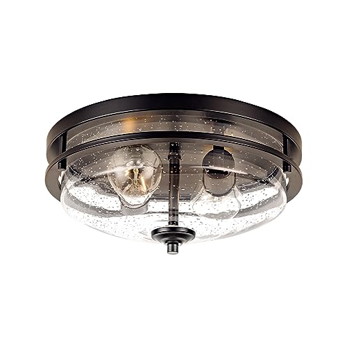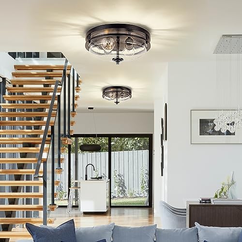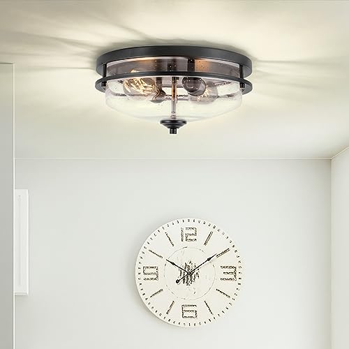 MODERN DESIGN: The fusion of industrial and farmhouse styles creates a uniquely modern flush mount ceiling light. This light fixtures ceiling mount is made of a high-quality metal frame and seeded glass, which is durable and charming