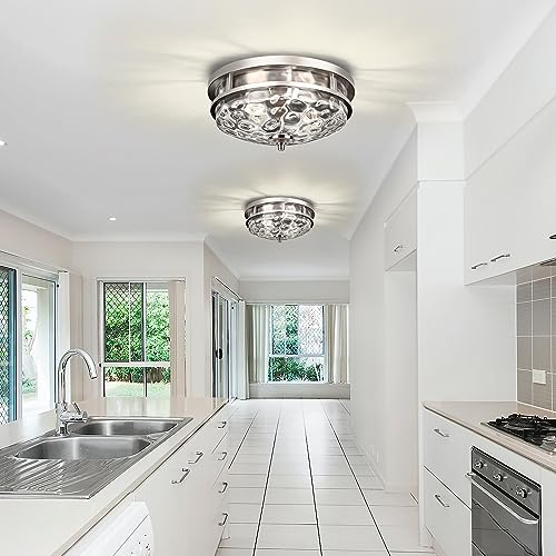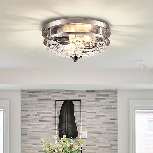 MODERN DESIGN: The fusion of industrial and farmhouse styles creates a uniquely modern flush mount ceiling light. This light fixtures ceiling mount is made of a high-quality metal frame and water ripple glass, which is durable and charming