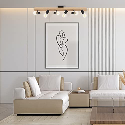 A STUDIO APPROACH: Wood and black modern appeal comes together in this adjustable lighting fixture that sits on the ceiling flush against it.