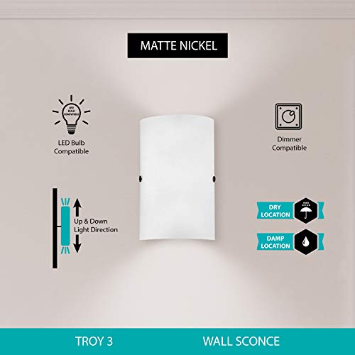 GREAT LIGHTING FOR YOUR HOME: One of EGLO's most versatile fixtures, the Troy 3, 1-Light Matte Nickel Wall Sconce offers a clean and simple design that enhances the look of any interior.