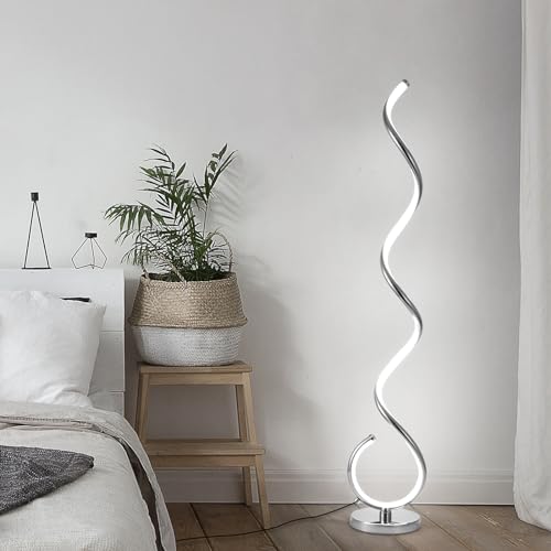 ?Modern LED Floor Lamp?Different from ordinary painting process, LED floor lamp adopts chrome plating process to form high-grade silver metal on the surface of the lamp body, which adds elegant artistic atmosphere to your room with the overall curve design. Product Size?7.87"D x 7.87"W x 50.59"H
