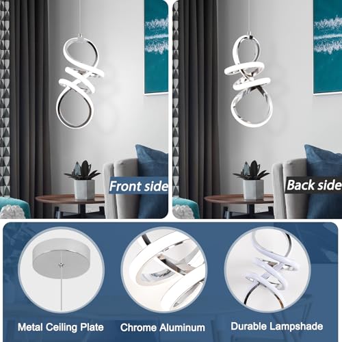 EIDISUNY Modern Led Pendant Light Fixture, 15W Chrome Spiral Pendant Light Kitchen Island, 4500K Daylight White Pendant Lamp, Adjustable Height Chandelier for Kitchen Dining Room Bedroom (Chrome)