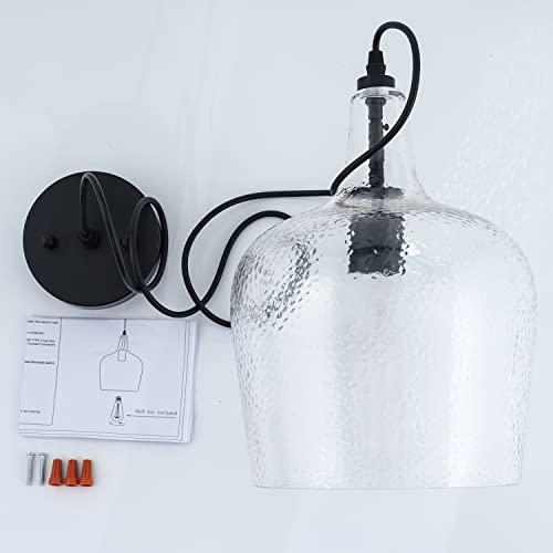 Modern Hammered Glass: Crafted from high-quality glass with a meticulously hand-hammered finish in a downward-facing shape, this modern pendant light hangs elegantly from a black cable and is secured with a black socket. Unlike clear glass, you won't have to worry about bubbles or water stains.