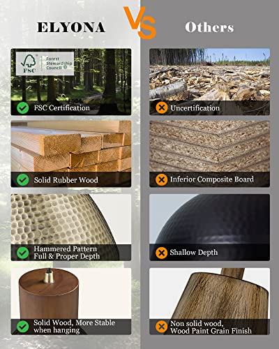 ?Why can you trust ELYONA's Solid Wood???Made of FSC Certification Smooth Solid Wood which has represents that the timber used is following the strict environmental standards of FSC. ?Unlike fiberboard’s wood grain paper surface and glued with unknown woodchips inside, ELYONA solid wood has a waterproof coating that won't cause edge warping when meeting water and is glue-free, formaldehyde-free. ? The pendant lamp has a certain weight to ensure that the wire will not bend when hanging