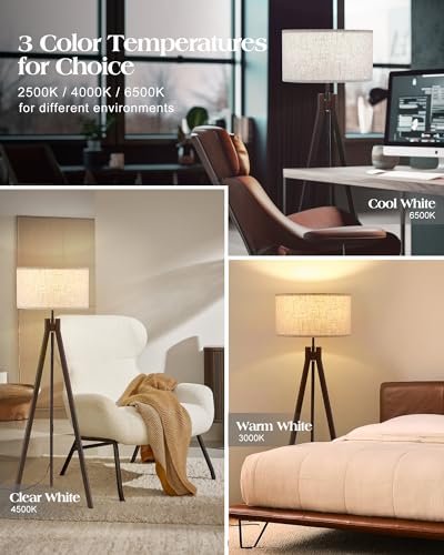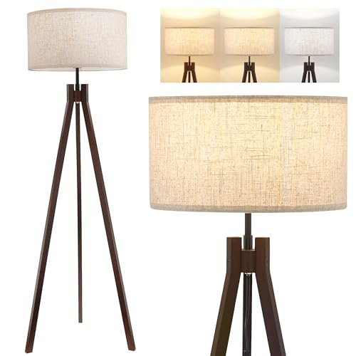 ?Modern Solid Wood Floor Lamp & Sturdy Tripod Legs ??This ELYONA Tripod Floor Lamp is crafted from FSC-certified solid wood and hand-stained to achieve a walnut color, making it a perfect match for It easy to match with a range of decor styles about farmhouse industrial, boho, country or loft etc. ?The classic triangular design ensures a sturdy structure, making it highly suitable for households with children or pets to prevent accidental collisions that could cause the lamp to topple over.