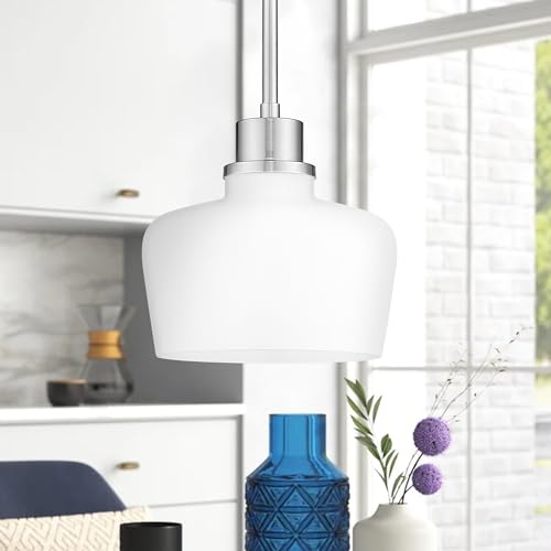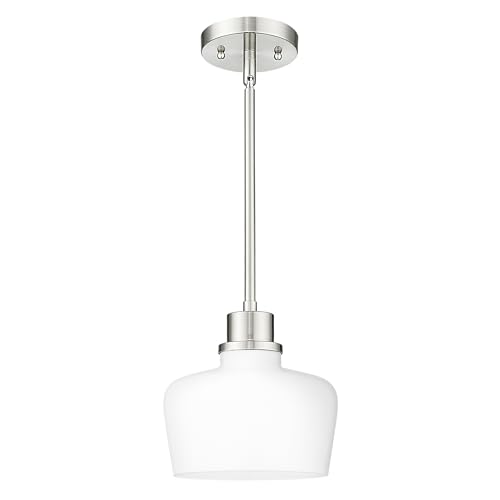 [Elegant Design] The EMAK pendant light fixtures infuses any room with its charm. Its robust metal frame with a sleek brushed nickel finish complements the white glass shade perfectly. Together, they cast a soft, welcoming glow that not only brightens your space but also serves as a luxurious decorative element.