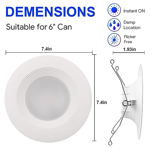 ?Wide Application: Led recessed downlight 6 inch are damp-rated, it can be installed in living room, bedroom, kitchen, bathroom, soffit and hallway
