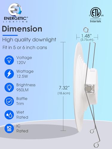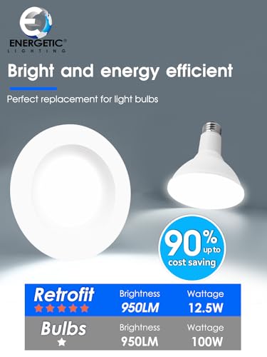 High Brightness: The 6 inch led recessed light retrofit with higher lumens and lower power. 950LM consumes 12.5 watts, which equals to 100W incandescent light, saving you up to 90% in energy