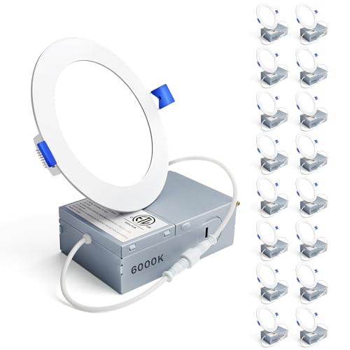 Ensenior 16 Pack 4 Inch LED Recessed Ceiling Light, Dimmable, 6000K Clear White, 750LM 9W 120V, High Brightness Canless Wafer Downlight - ETL&FCC&IC