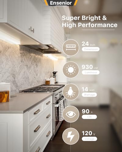Energy-Saving & Durable: Replacing an incandescent fixture with our led lights for under cabinet (14W 930LM) can cut your electric bill by 60%-70%, With a lifespan of 50,000 hours, these fixtures are made to 5-10 years under normal operation
