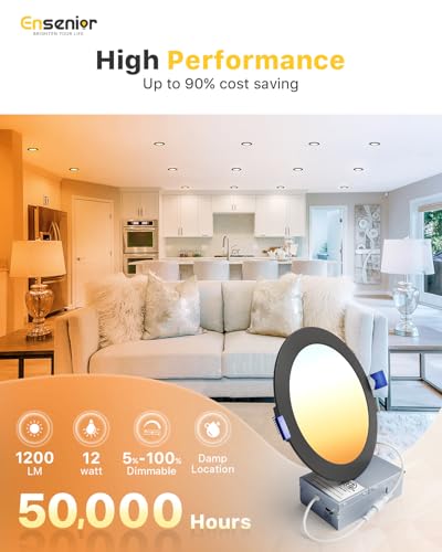 HIGH BRIGHTNESS - Ensenior 6 inch recessed lighting enjoy up to 90% energy savings without compromising on brightness. The enhanced LED chip emits 1200LM and consumes only 12 Watts. 5%-100% smooth dimming, compatible with most dimmers.