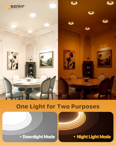 Two Modes in One Light: Ensenior 5/6 inch LED can lights with night light can provide two modes in one light, which can be switched by wall switch-2700K night light mode and 5CCT downlight mode; The nightlight mode provides 2700K golden warm color temperature, creating a cozy, warm and comfortable ambience to help you fall asleep at night.