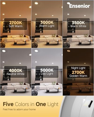 Two Modes in One Light: Ensenior 5/6 inch LED can lights with night light can provide two modes in one light, which can be switched by wall switch-2700K night light mode and 5CCT downlight mode; The nightlight mode provides 2700K golden warm color temperature, creating a cozy, warm and comfortable ambience to help you fall asleep at night.