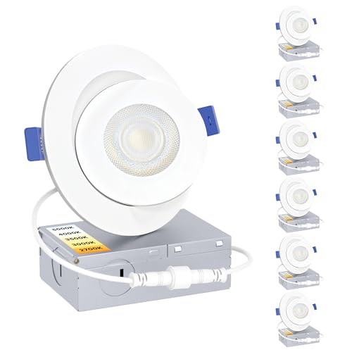 5CCT Selectable & 10%-100% dimmable: Choose your preferred color setting from 2700K/3000K/3500K/4000K/5000K with a simple click on the side of our directional recessed light. This eyeball light also offers smooth dimming capabilities (100%-10%), creating the perfect ambiance for any occasion.