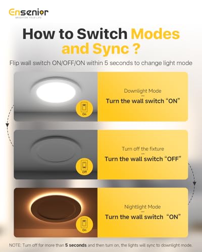 ?????Synchronization Reset Function?Every time when you turn on the light, it will automatic reset to downlight mode. If the lights are in different modes, you could turn the wall switch off for over 5 seconds and turn on again to synchronize the lights to downlight mode, or turn it off and on in 5 seconds to Night light mode.