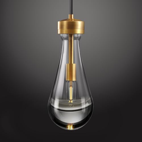 EXQUISITE DESIGN: Exquisite design makes the modern brass Pendant Lights kitchen island a standout! A striking teardrop shaped glass shade softly diffuse light and create warm ambient lighting, while the pendant lights add a touch of industrial chic and retro charm to any space. Boasting an attractive and unique design, island lights for kitchen will put you in a good mood every day, and not only light up the darkness better but also decorate your house well.