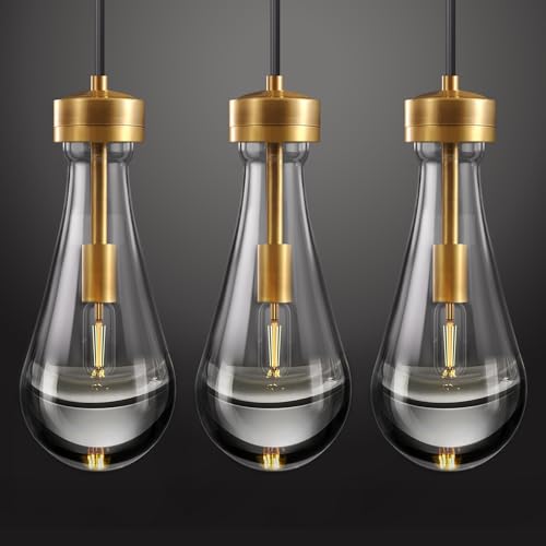 EXQUISITE DESIGN: Exquisite design makes the modern brass Pendant Lights kitchen island a standout! A striking teardrop shaped glass shade softly diffuse light and create warm ambient lighting, while the pendant lights add a touch of industrial chic and retro charm to any space. Boasting an attractive and unique design, island lights for kitchen will put you in a good mood every day, and not only light up the darkness better but also decorate your house well.