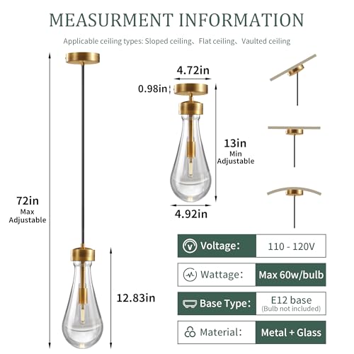 EASY INSTALLATION: Espird kitchen island pendant lights are a breeze to install. Designed for quick mounting above kitchen Island Living Room Bedroom Bathroom. All mounting hardware required are included in the package, suitable US junction box standard. Espird raindrop pendant lights kitchen island require E12 base bulbs, 60W max. Note: Bulbs are not included.