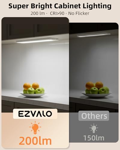 Energy Efficient and Durable Design: The EZVALO wireless under cabinet lighting is energy-efficient and built to last. With a luminous flux of 220 lumens, it delivers reliable performance without frequent recharging. Constructed from durable ABS plastic and aluminum, the light ensures long-lasting performance.