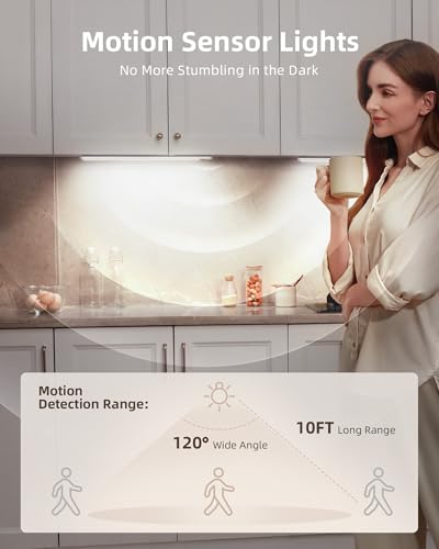 ?Smart Motion Sensor & 2 Auto Modes?The motion sensor light indoor will turn on when movement within 10 ft / 120° range. In [Day Mode], under cabinet lights turn on whenever motion is detected; [Night Mode] activates under counter lights only at dark environment. If the movement is not presented in 20s after turning on, the closet lights will go off for energy conservation.