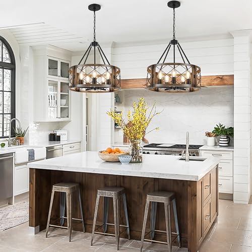 ?Customized & Adjustable Height?Pendant lighting for kitchen island: 19.68'' Diameter, The farmhouse kitchen lighting possesses a strong adjustable chain with a maximum length of 79.6 inches, easily customize the height of this unique entryway chandelier according to your preferences.