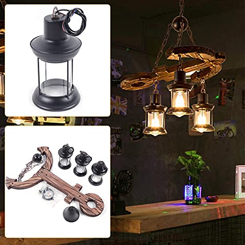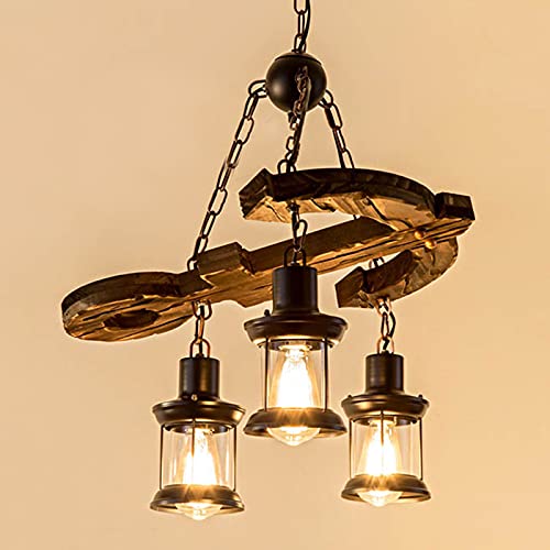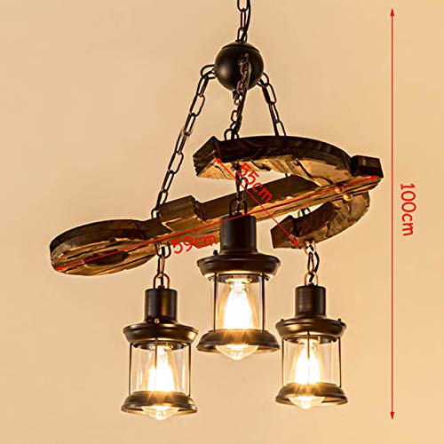 ?Creative retro design?The antique chandelier inspired by the farmhouse creates a warm and comfortable home atmosphere, specially designed to illuminate the center of your kitchen, restaurant or industrial style place. The uniquely shaped wood and metal chain add a rustic and retro atmosphere to your space. It has a rustic wooden structure designed to project soft ambient light into your room.