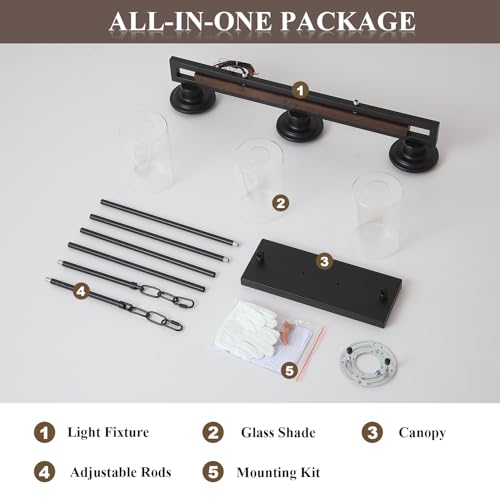 ?Very easy to install?This farmhouse pendant light includes all mounting accessories for your quick installation. Along with clear installation instructions, you can easily follow the steps to install the island light. If there is any quality problem with this farmhouse dining light, or you are not satisfied with your purchase, please feel free to contact us via Amazon message box, we will solve the problem for you immediately