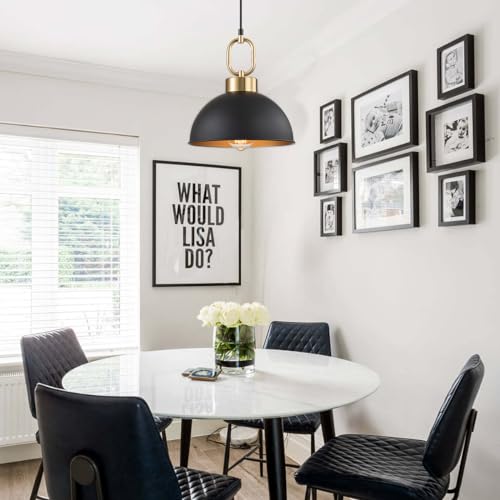 Industrial Modern Design:This one light pendant light fixture features a classic dome silhouette and a gold top, adding elegance to any space. The light-gold painted interior of the shade reflects the light from a standard 60-watt bulb, filling your space with a beautiful warm glow and ample downward-focused light.