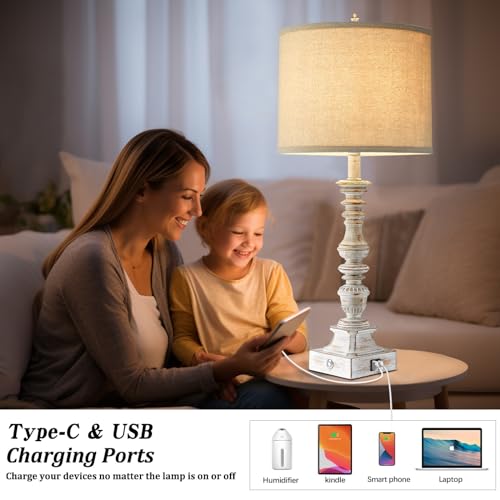 ?Lamps with Convenient USB A+C Charging Ports? These bedside lamps set of 2are equipped with two USB A+C ports for individuals, providing convenient chargingoptions for your devices that allow you to charge up 4 electronics simultaneously whileyou working, reading or sleeping. Works whether the nightstand lamp is on oroff.which effectively solves the trouble of not enough Ac sockets beside the bed.Superconvenient for your daily life and your family
