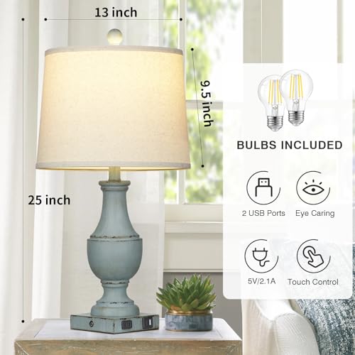 Farmhouse Rustic Retro Table lamps: Bedroom lamps crafted with antiqued blue resin and linen fabric lampshade, boasting unique vintage-inspired textures that offers charmingly retro aesthetic appeal. The classic design of lamps lends elegant and sophisticated touch to home space, allowing to complement various styles, including nordic, simple, country and minimalist. This farmhouse table lamps make perfect for end tables, desks, beside sofas and dressers, bring a high-quality home lifestyle.