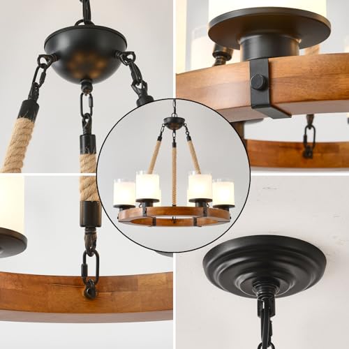 ?High-Quality Materials & Durable Chandelier Construction?Made with premium wood and a sturdy metal frame, this rustic chandelier is built to last. The rust-resistant finish ensures long-term durability, while the seeded glass shades provide a soft, inviting glow, making it a stylish and reliable lighting fixture.