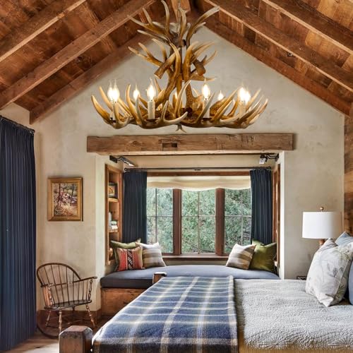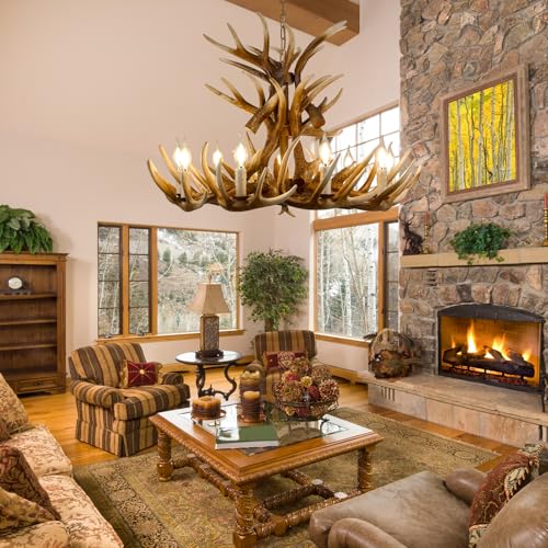 EXCELLENT CRAFTSMANSHIP AND UNIQUE STYLE: Each lifelike antler is handcrafted, sanded and stained to achieve the natural look of real antlers. Each piece is a one-of-a-kind masterpiece that whispers a story of untamed beauty while elevating the interior of a modern farmhouse, lodge or cabin. This large antler chandelier is suitable for living room, dining room, bedroom, staircase, foyer, entrance
