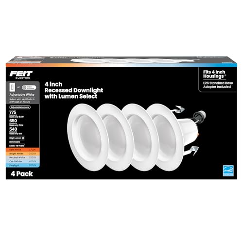 ENERGY-EFFICIENT BRIGHTNESS – Upgrade your home lighting with the Feit Electric 4" Recessed LED Downlight, delivering the brightness of a traditional 75-watt bulb while using only a fraction of the energy. Save money on electricity bills without compromising on performance, and enjoy reliable, high-output light for any space.
