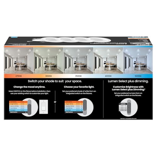 CUSTOMIZABLE LIGHTING OPTIONS – With 5CCT selectable color temperatures, you can easily adjust between warm white (2700K), neutral white, or cool daylight (5000K) to perfectly suit your mood and space. Plus, with Lumen Select technology, you can fine-tune brightness at installation for the ideal light output.