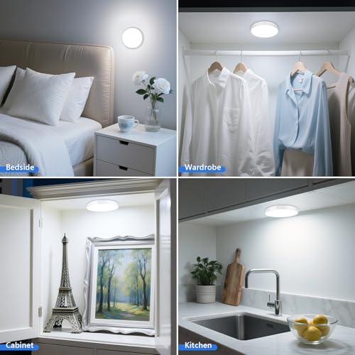 [Easy to Install & Portable]- The Tap Light built-in magnet on the back, you can stick on any metal surface directly.And you can use the upgrade adhesive tape to stick on any non-metal surface. The size of the stick on light is only 18*dia86mm, you could easily stick on the bedroom, bathroom, kitchen, hallway and closet.