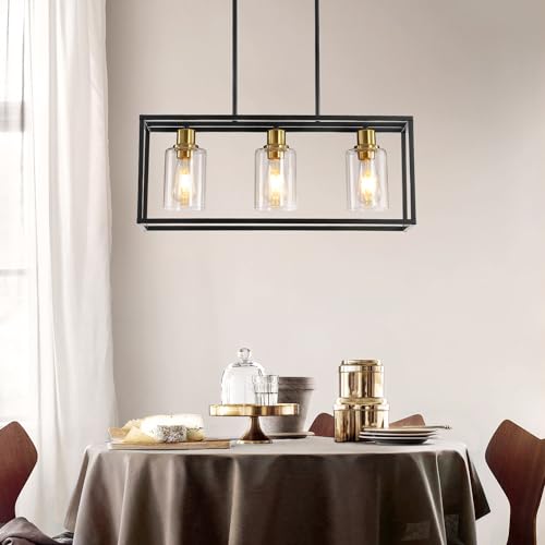 Classic Design: Dining room light fixture is designed with high quality metal frameand an open design, Making it easy to replace light bulbs. Black and gold finish combined with clear glass globe, Simple and elegant, Classic and durable, Can light up your kitchen, Dining room, Living room and other kinds of indoor places