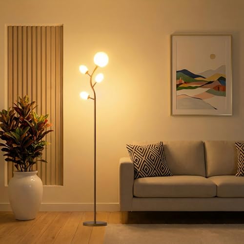 Elegant and Versatile Floor Lamp: A creative decoration tree globe lamp style, with quality handcrafted metal and orb frosted glass shade, its adding a warm ambiance and unique personal space, it is versatile addition fit for mid century, modern, contemporary, vintage.