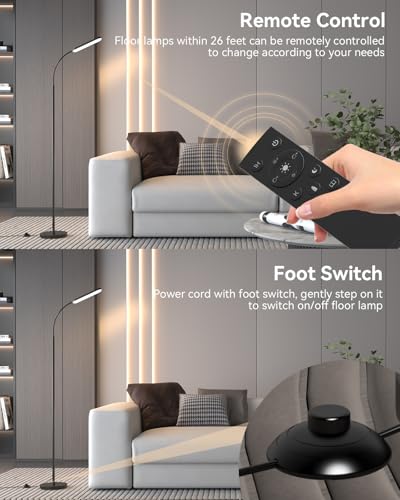 Smart Remote and Foot Switch: 26ft distance remote control precisely control the LED floor reading lamps even if there are obstacles, allowing easy adjustment of light settings.The magnetic remote can be attached to the metal lamp pole for convenient access and to prevent loss. (Note: Power cord with foot switch, gently step on it to switch on/off floor lamp)