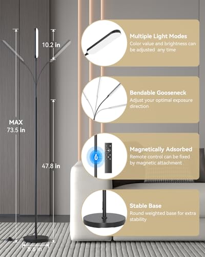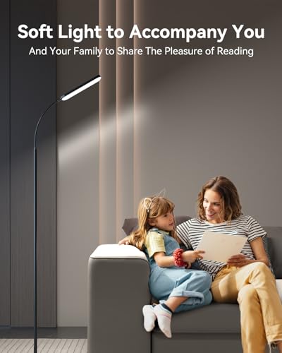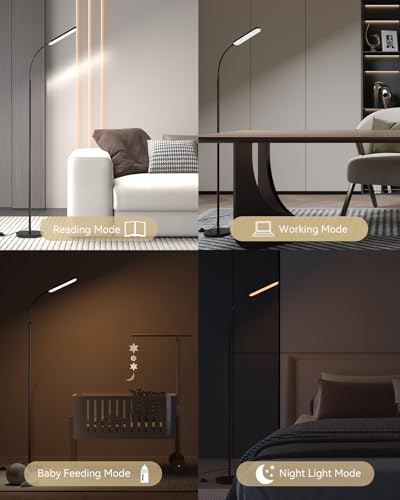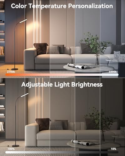 Adjustable Brightness & Color Temperature & Timing 1H: The floor lamps for living room bedroom supports 10%-100% stepless dimming, offering a range of lighting from soft to bright. The color temperature can be adjusted between 2700K warm white to 6000K cool white, easily creating different atmospheres. The standing lamp features 3 preset modes (Work, Reading, Care), with one-touch adjustment to meet various scene requirements, providi