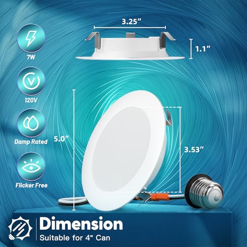 5CCT Selectable The 4 inch LED recessed light offers 5 color temperature options, from warm white to cool daylight, so you can customize the can light to match your room's mood and style with ease. Also you can adjust the brightness of the recessed lights from 5% to 100% according to different time and occasion with most compatible dimmers