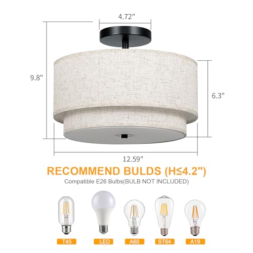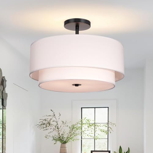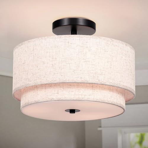 CLASSIC FABRIC CEILING LIGHT: The ceiling light fixtures combine the classic elegance to modern decor style. Complete with a double drum shade that adds to the overall elegance of the ceiling light, which reserves its modern flair while showing more light effects.