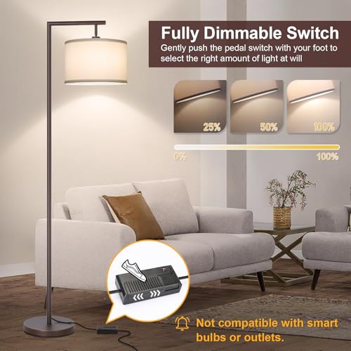 Convenient Pedal Dimmer Switch: Designed with a user-friendly foot-operated dimmer switch, our modern floor lamp provides 0-100% brightness to meet for daily lighting needs. No need to bend over or fumble with the switch by hand, an easy push with your foot adjusts the brightness from dim to bright.